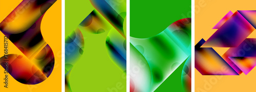 Set of colorful geometric posters - round shapes and circles with fluid color gradients. Abstract backgrounds for wallpaper, business card, cover, poster, banner, brochure, header, website