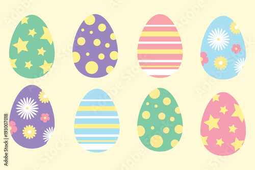 Set of colorful ornament easter eggs in cartoon style, simple flat design, vector illustration