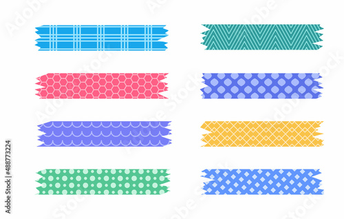Set of colorful patterned washi tape strips. Cute decorative scotch tape isolated on white background
