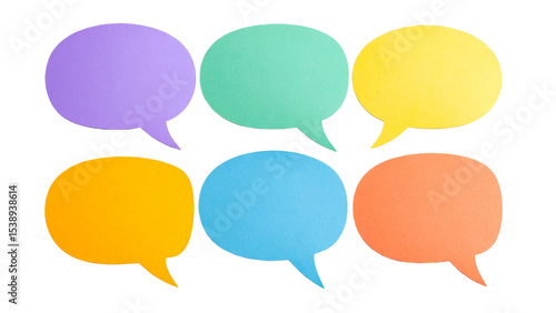 Set of colorful speech and thought bubbles in flat design style. Comic-style blank dialogue balloons. Vector cliparts isolated on transparent background for design and communication themes