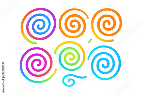 Set of colorful spirals rotating on transparent background, creating dynamic and vibrant visual effect