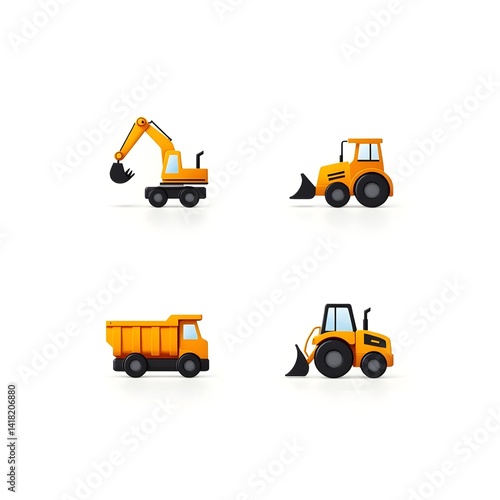 Set of Construction Vehicle Truck Icon Mining Building Heavy Engineering Equipment Transportation Vector Illustration