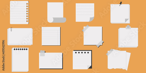 Set of Cool Vector Paper Notes, Thumbtack and Clip.