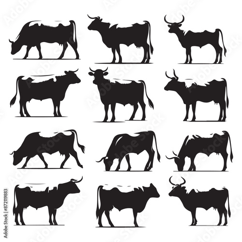 Set of cow silhouettes isolated on a white background, Vector illustration.