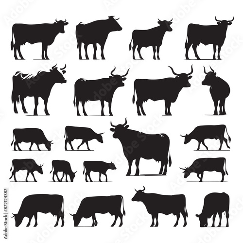 Set of cow silhouettes isolated on a white background, Vector illustration.