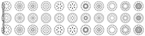 Set of creative fireworks explosion design vectors, ornament fireworks colorful design vector.