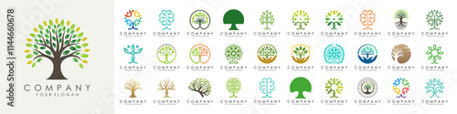 set of creative tree logo design. Green Garden Vector Logo Template. vector illustration