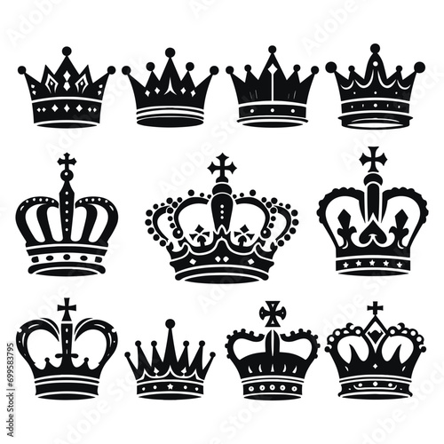 Set of crown silhouettes isolated on a white background, Vector illustration.
