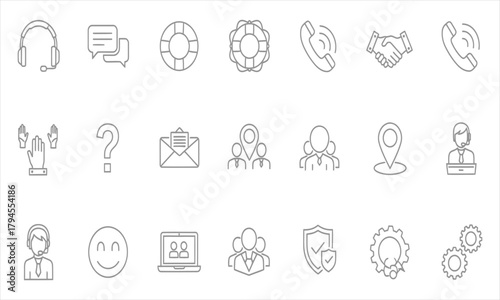 Set of customer service icons representing support, communication, and assistance concepts for business and digital purposes