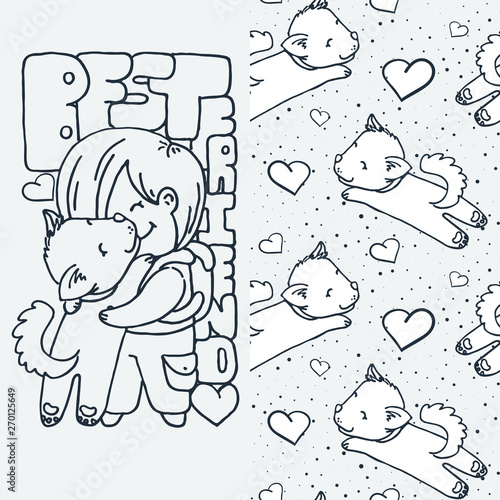 Set of cute cartoon animal and seamless pattern. Vector clip art illustration for children design, cards, prints, coloring books