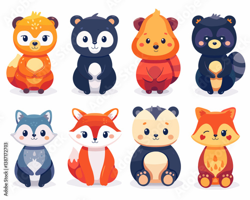 Set of cute cartoon animals on white background. Vector illustration for your design.