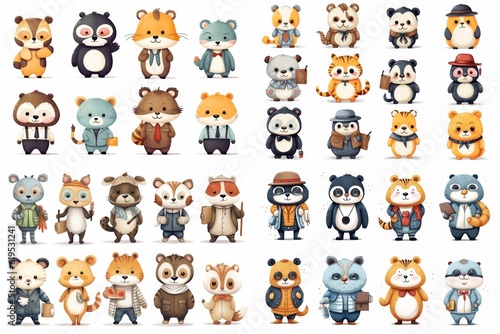 Set of cute cartoon animals school