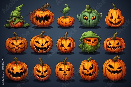 Set of cute cartoon pumpkins. Halloween Jack Lantern Generative AI
