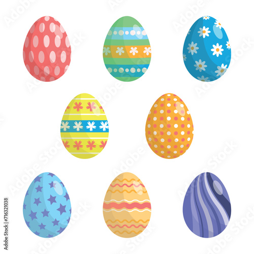 Set of cute colorful Easter eggs. Easter eggs with patterns.