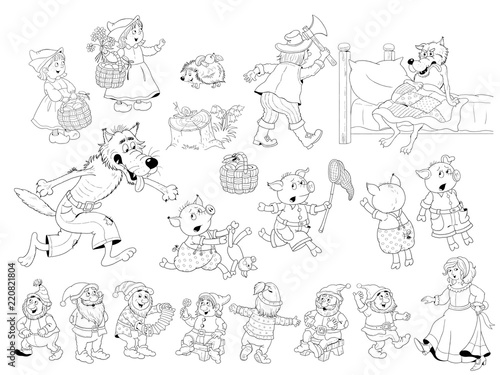 Set of cute fairy tale characters isolated on white. Coloring book. Coloring page. Cartoon