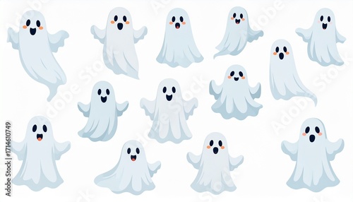 set of cute halloween ghosts illustration design. Flat halloween ghosts vector