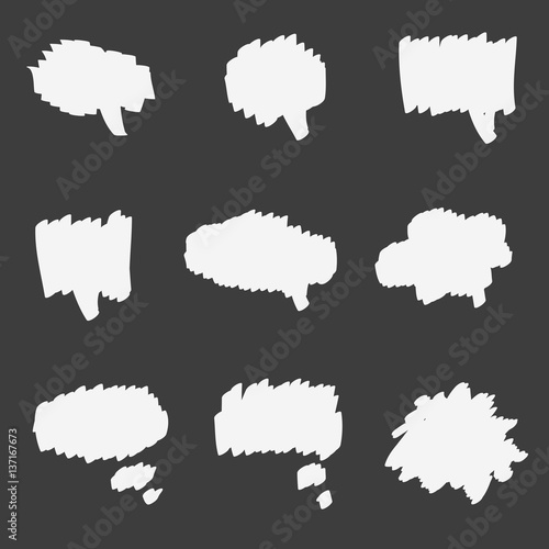Set of cute hand drawn speech bubbles. Doodle style. Talk clouds sketching. Balloon shape. Vector illustration.