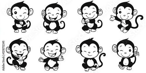 Set of cute hand-drawn monkeys in line art vector style featuring playful baby monkeys.