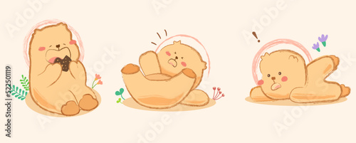 Set of cute little bears decorative illustration. A set of teddies poses. Cartoon suitable for print, sublimation, shirt, postcard, printable, stationery ,kids product ,nursery ,etc.