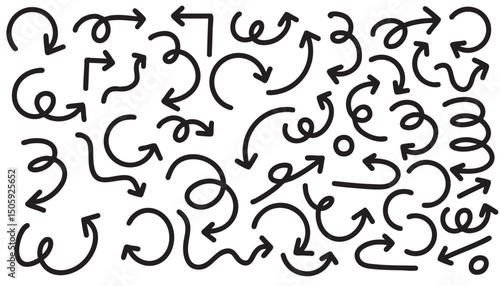Set of cute pen line doodle element vector. Hand drawn doodle collection of arrows. Design for print, cartoon, card, decoration, sticker.