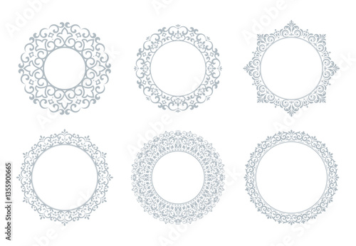 Set of decorative frames Elegant vector element for design in Eastern style, place for text. Floral gray and white borders. Lace illustration for invitations and greeting cards