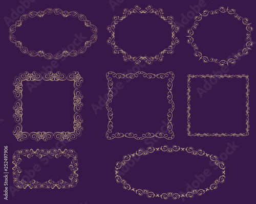 Set of decorative gold frames on the dark background