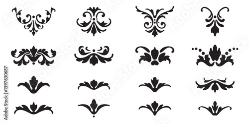 Set of decorative ornaments leaf elements. Vintage calligraphy collection