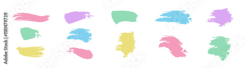 Set of different brush strokes. Multicolored doodle brush strokes vector art. Vector brush stroke