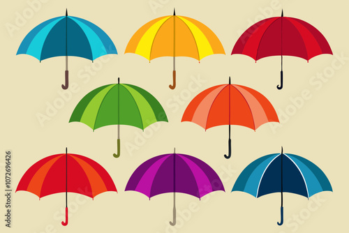 Set of different colored umbrellas vector art illustration