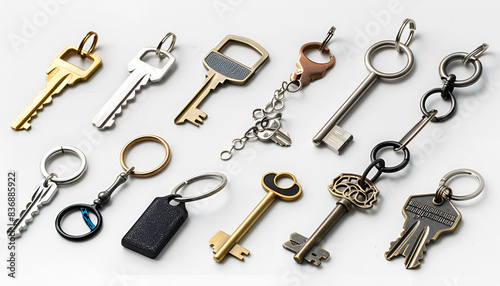 Set of different key chains isolated on white