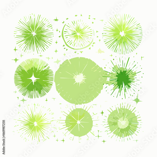Set of different sparkling green light effects