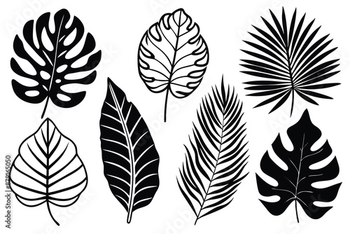set of different tropical leaves vector illustration
