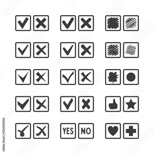 Set of different vector check box icons for voting agreement confirmation acceptance and task list