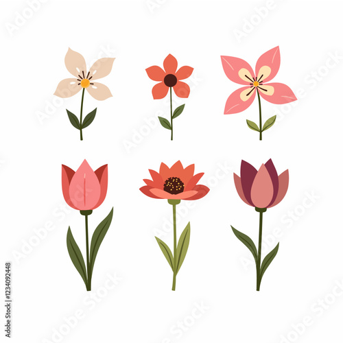 Set of different Vector flowers. Bright and colorful flower icons