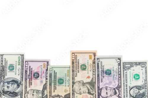 Set of dollar banknotes on white background