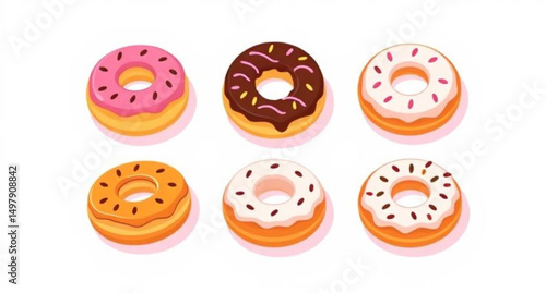 set of donuts vector, donut vector illustration, assorted donuts, glazed donut vector, chocolate donut, strawberry donut, sprinkled donut, frosted donuts vector, donut icon set, sweet donuts, donut co