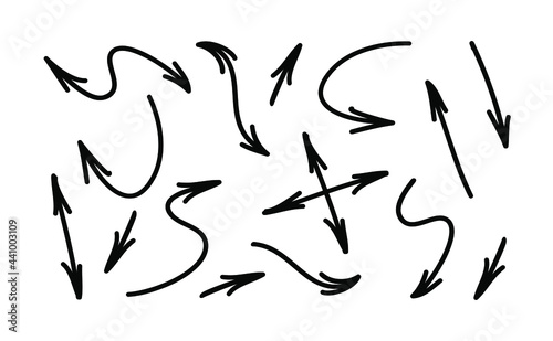 Set of doodle arrow isolated on white background.Black hand drawn set icon.Vector illustration.