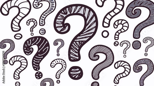 Set of doodle hand drawn vector question marks.