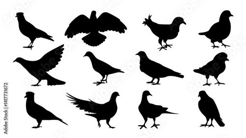 set of dove silhouette vector on white background
