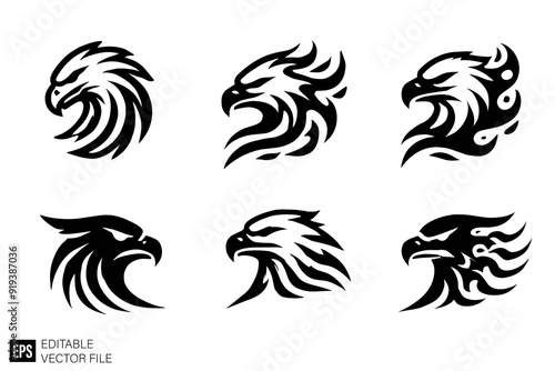 set of eagle head Clip Art Black and White Illustrations Graphic Design Elements Vector Silhouette