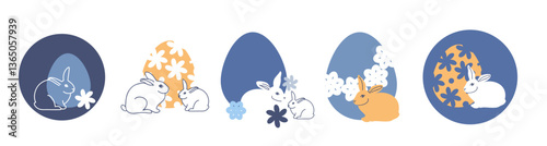 Set of Easter eggs and rabbits. Vector illustration in flat style.