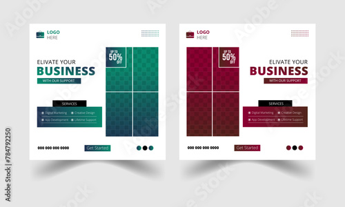 Set of editable digital business marketing agency promotion social media post or corporate square web banner template