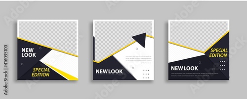 Set of Editable minimal square banner template. Blue yellow white background color with geometric shapes for social media post and web internet ads. Vector illustration