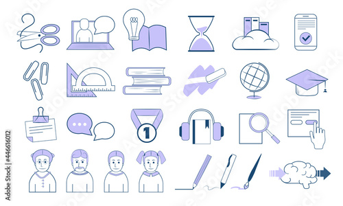 Set of education icons. Back to the school icon set. Thin line icons set. Simple vector icons