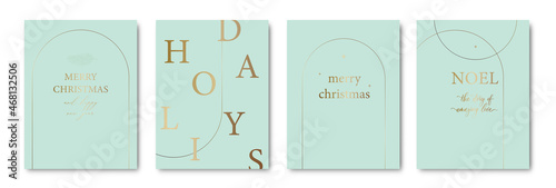 Set of Elegant Merry Christmas mint green cards for greetings, invitation, flyer, brochure, cover.