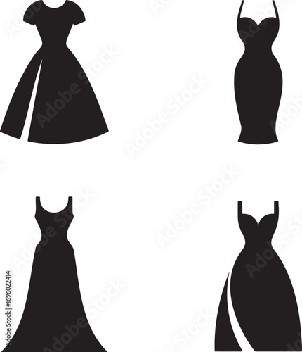 Set of Elegant Women’s Dress Silhouettes – Fashion Vector Illustration Collection