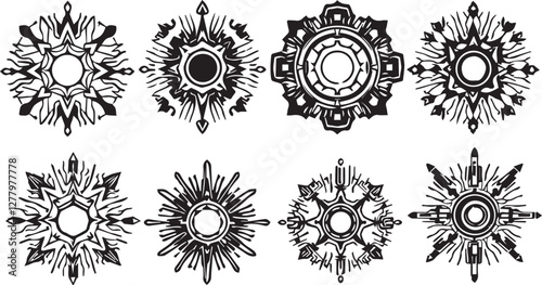 Set of elements for flat design, patterns, ornaments, mandalas. Hand drawn vector illustration