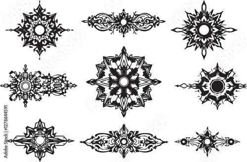 Set of elements for flat design, patterns, ornaments, mandalas. Hand drawn vector illustration