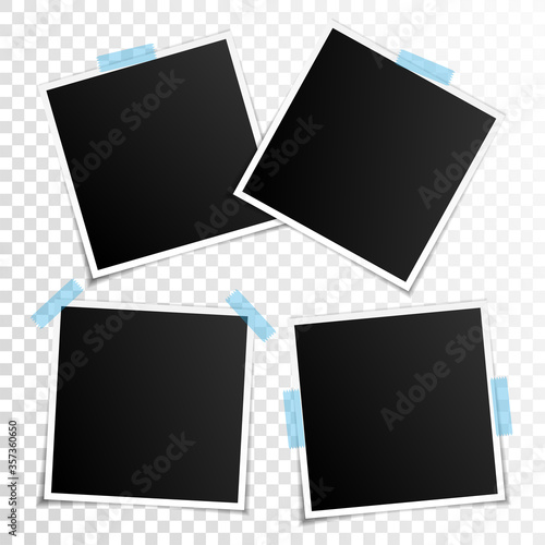 Set of empty photo frames with adhesive tape