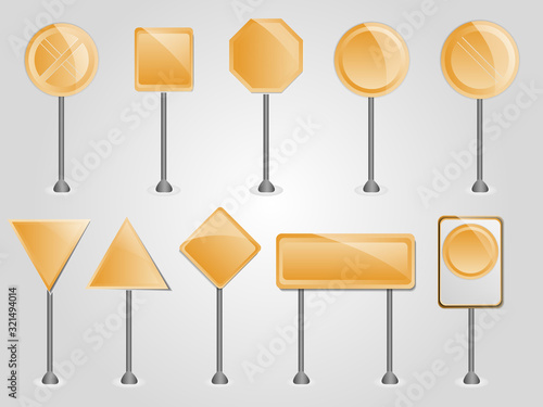 Set of empty volume road signs. Realistic scalable with 3d volumetric. Empty space for text. Vector illustration isolated on white
